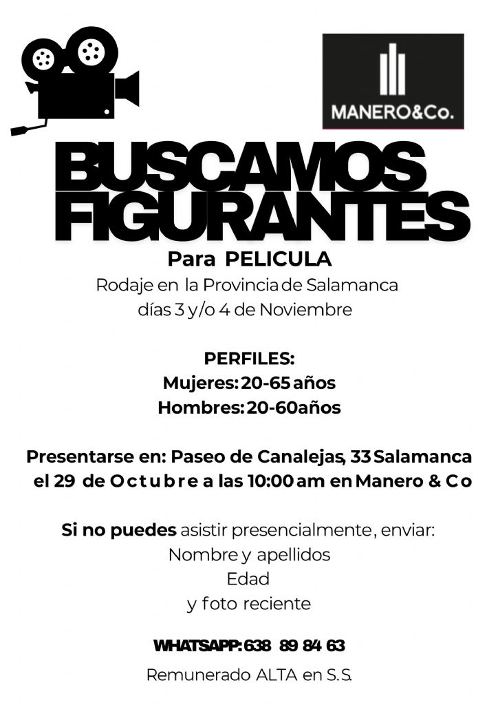 El casting se hará en las instalaciones de Manero & Co., mañana miércoles día 29 de octubre, a partir de las 10 de la mañana, en Paseo Canalejas número 33.